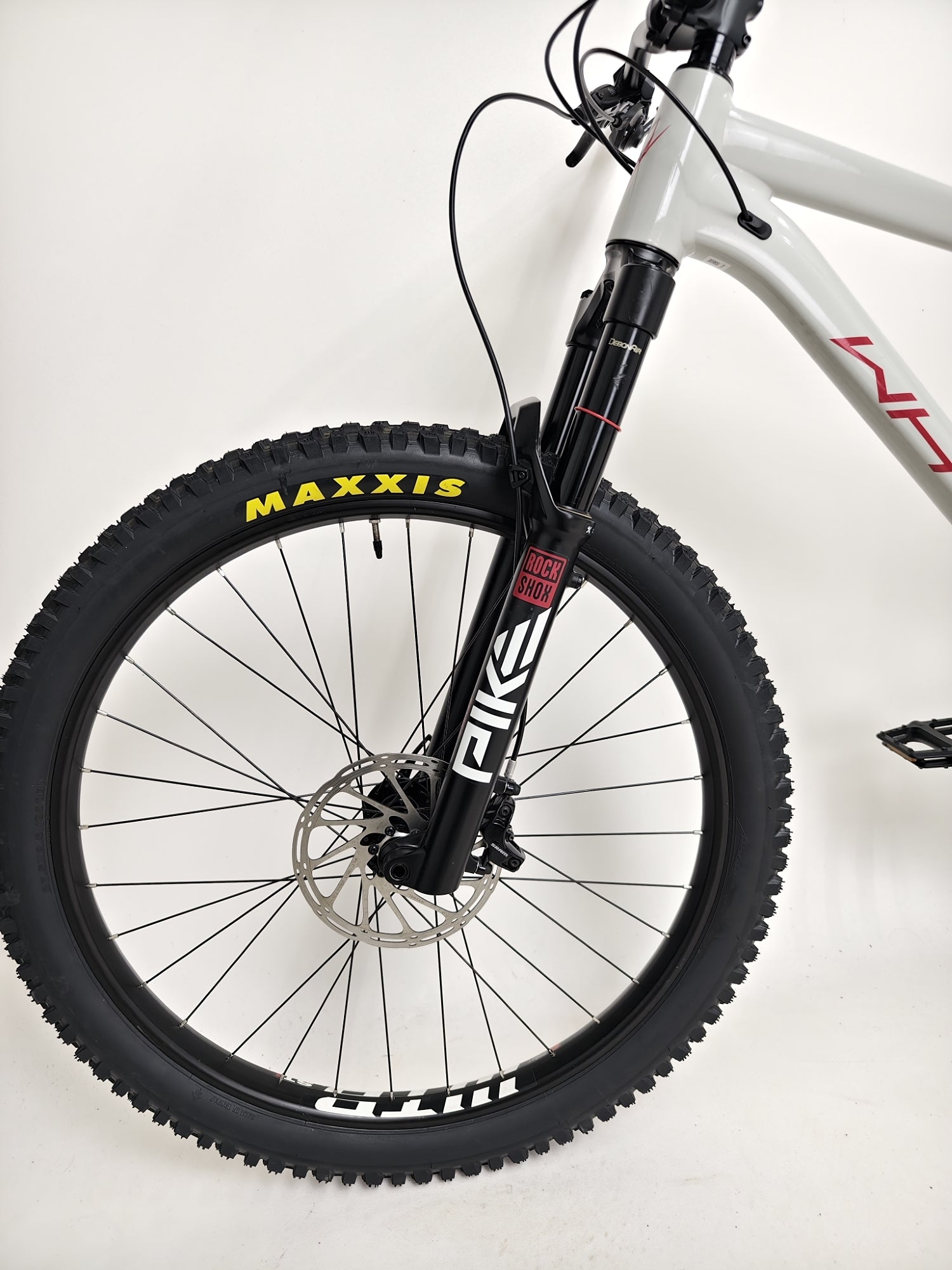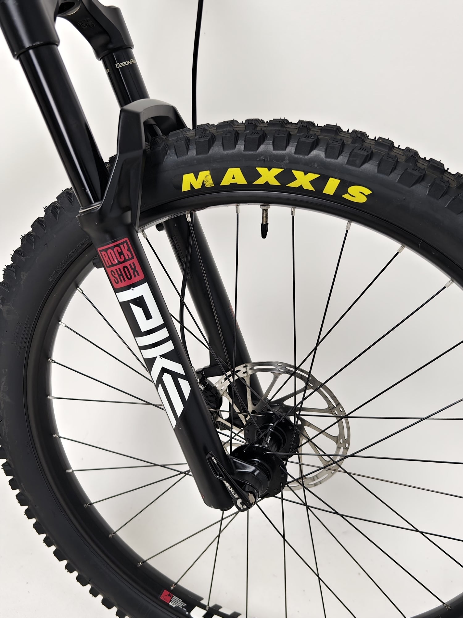 - Front Suspension Fork: RockShox Pike Select RC 27.5”, 130mm Travel, 37mm Offset, DebonAir, Charger RC Damper, Fast Black Coating, Tapered Steerer, 110mm x 15mm Boost, Maxle Ultimate