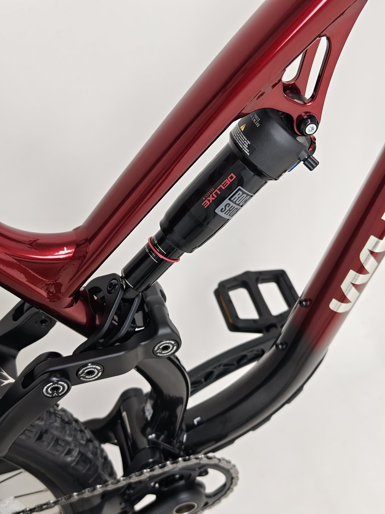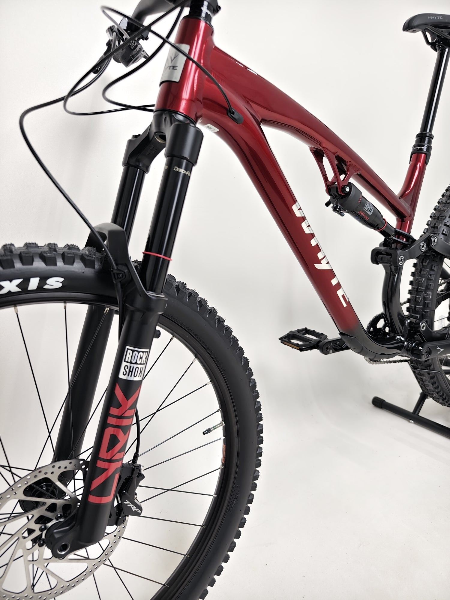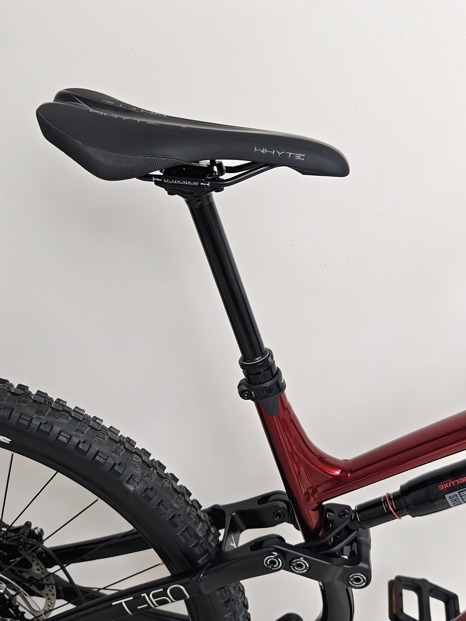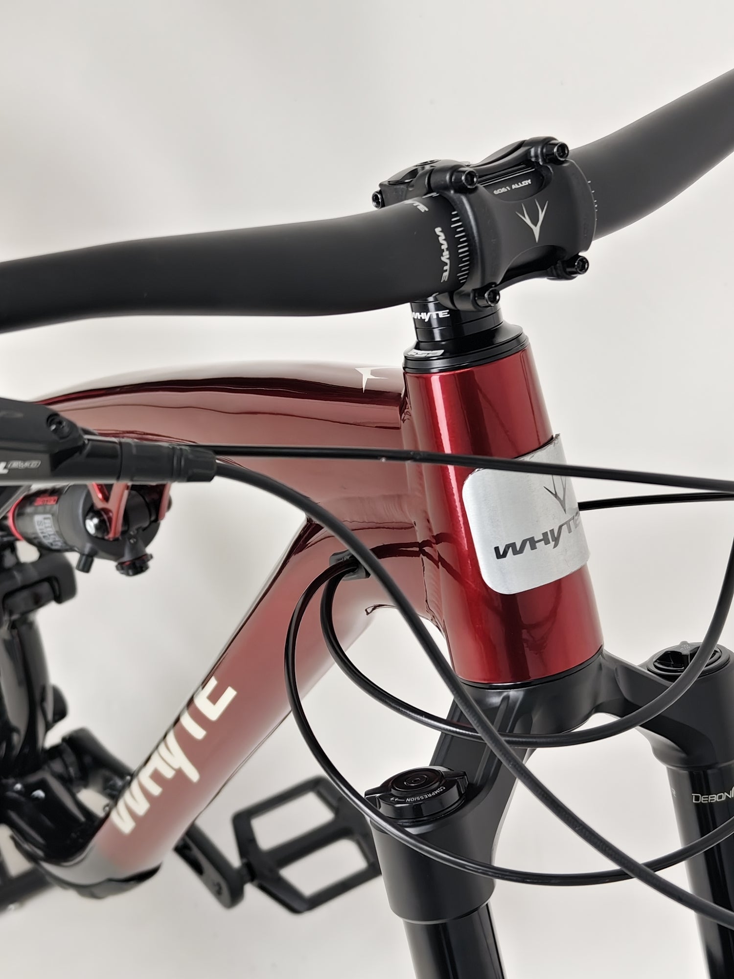 - Shock: RockShox Deluxe Select + RT, DebonAir, Fast Black Coating, Adjustable Rebound and 2 Position Compression, 210 x 55mm, custom tuned for Whyte