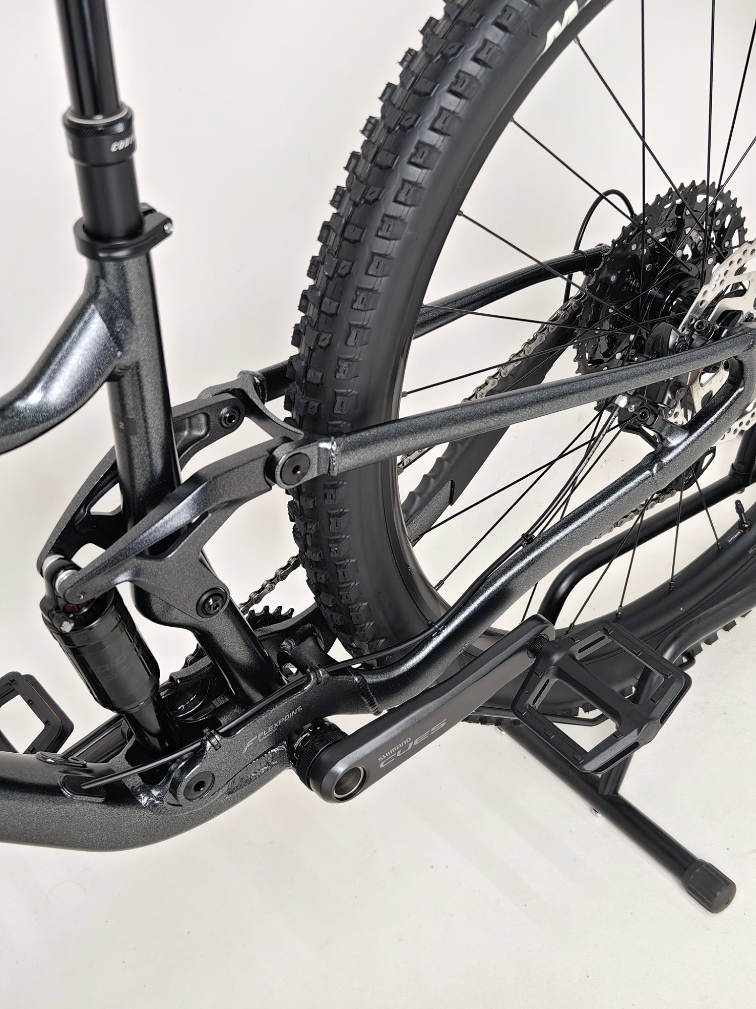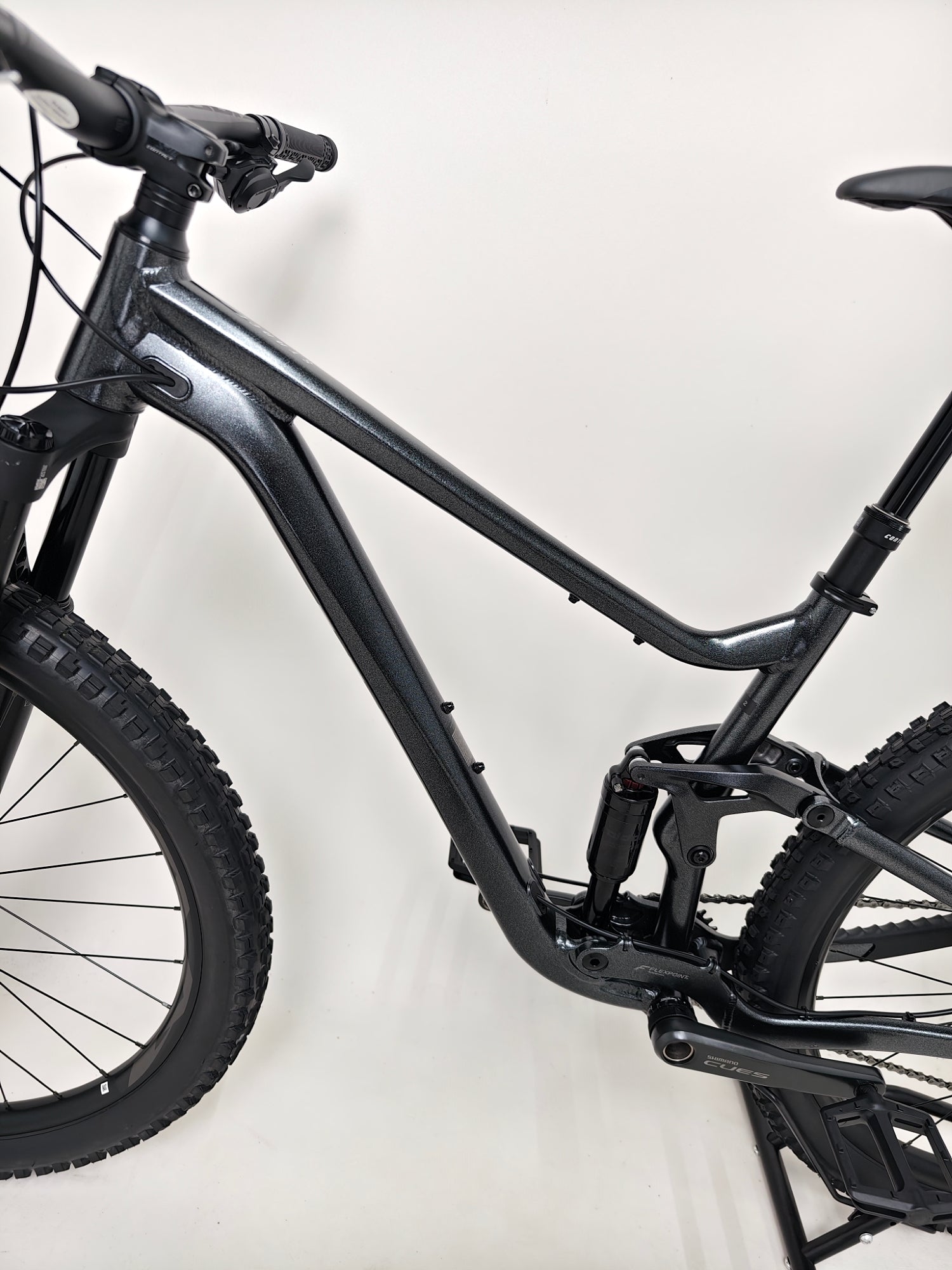 - Frame: ALUXX-grade aluminium, 125mm FlexPoint suspension, 12x148mm thru-axle