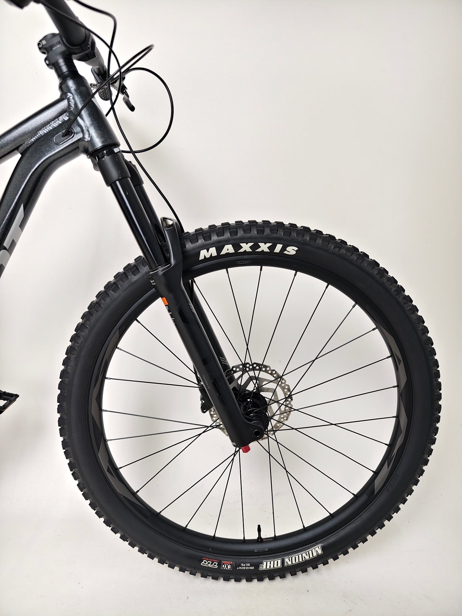 - Tyres: [F] Maxxis Minion DHF 29x2.5 WT, EXO, TR [R] Maxxis Dissector 29x2.4 WT, Dual, EXO, TR, tubeless
