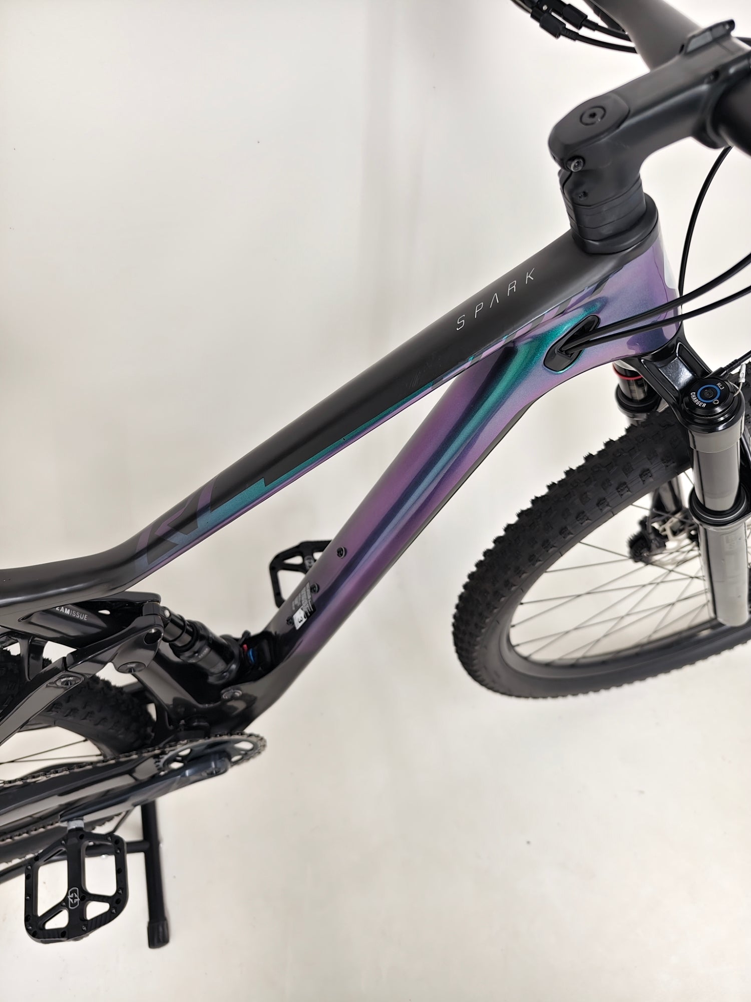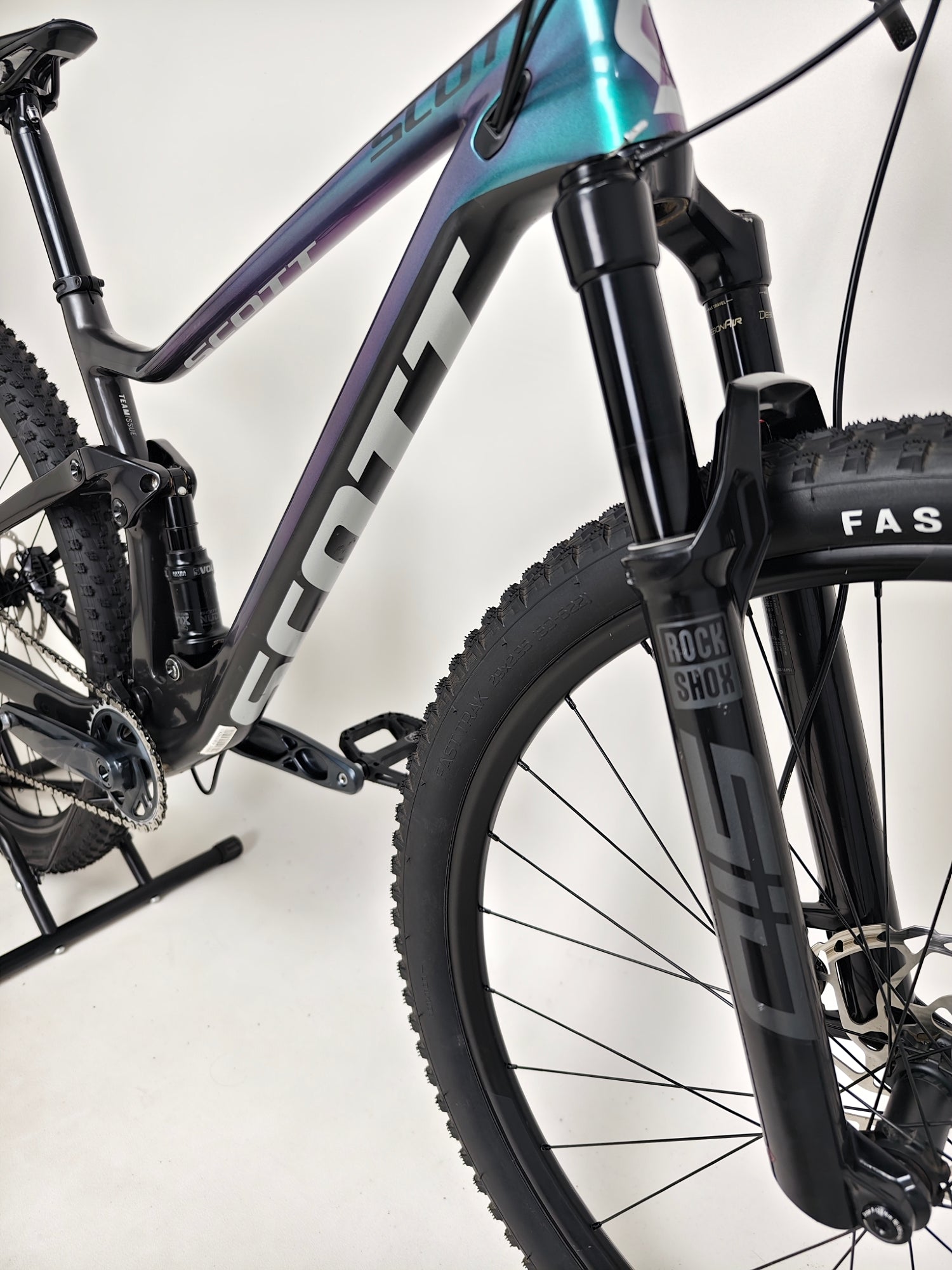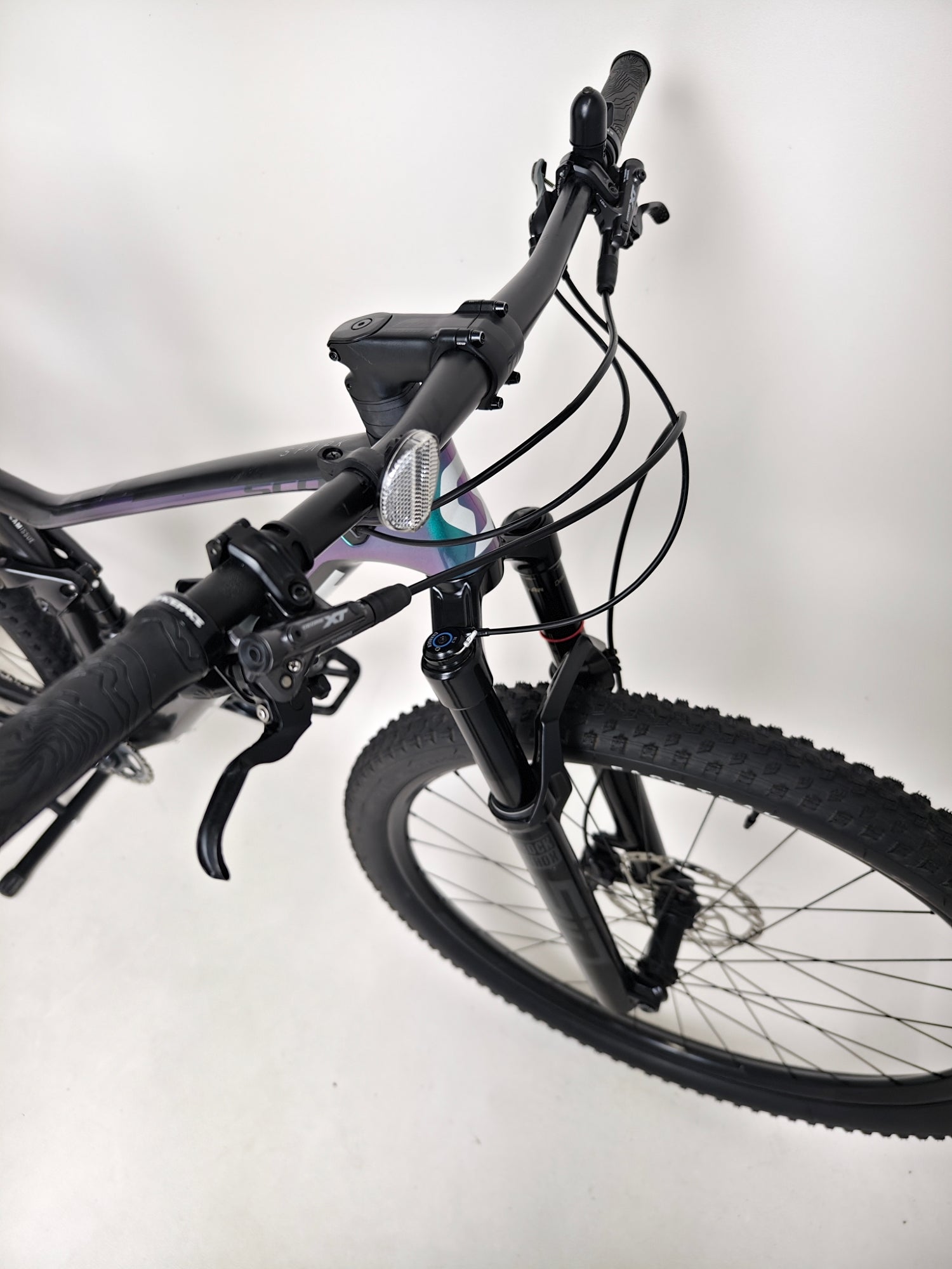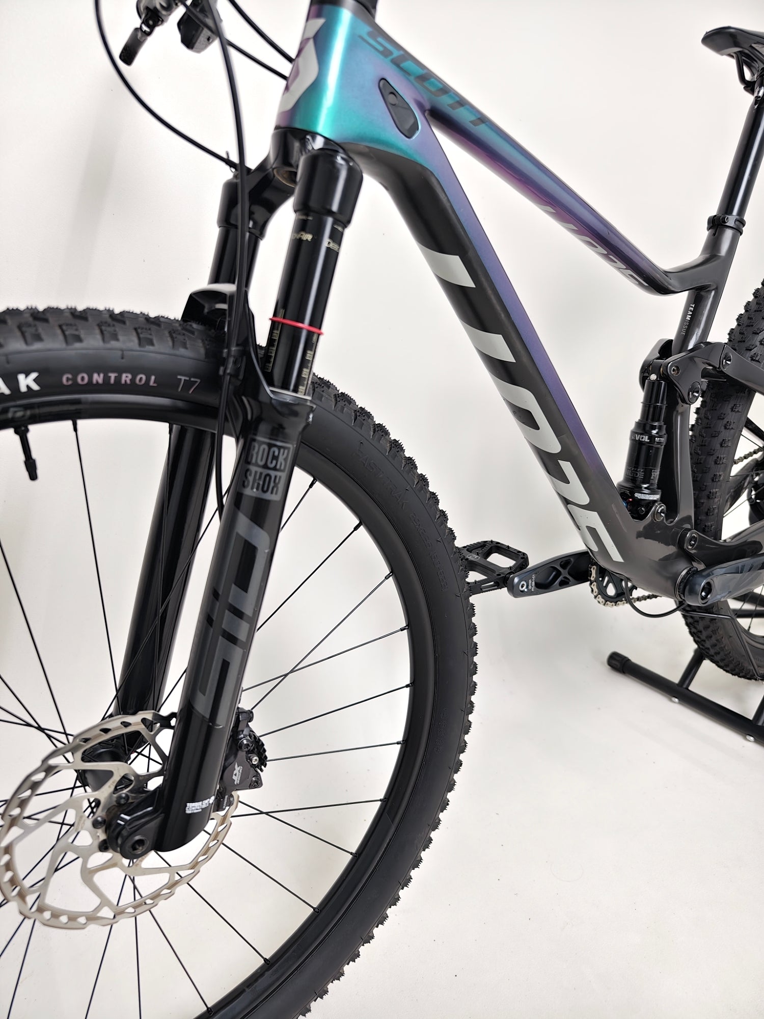 - Front Suspension: RockShox SID Select RL3, Charger damper, 3-mode adjust via Scott TwinLoc TSP (Lockout, Traction Control, Descend), rebound adjust, 44mm offset