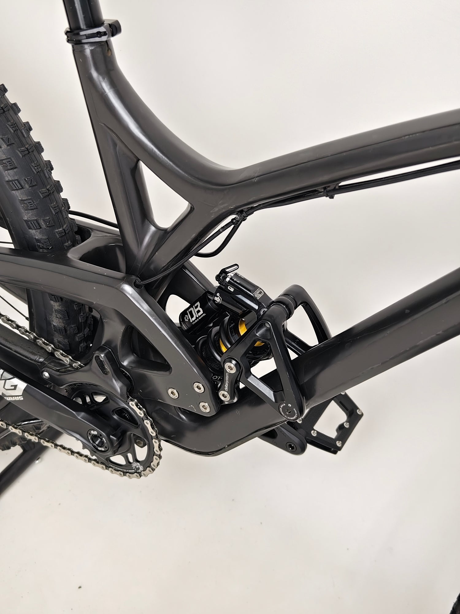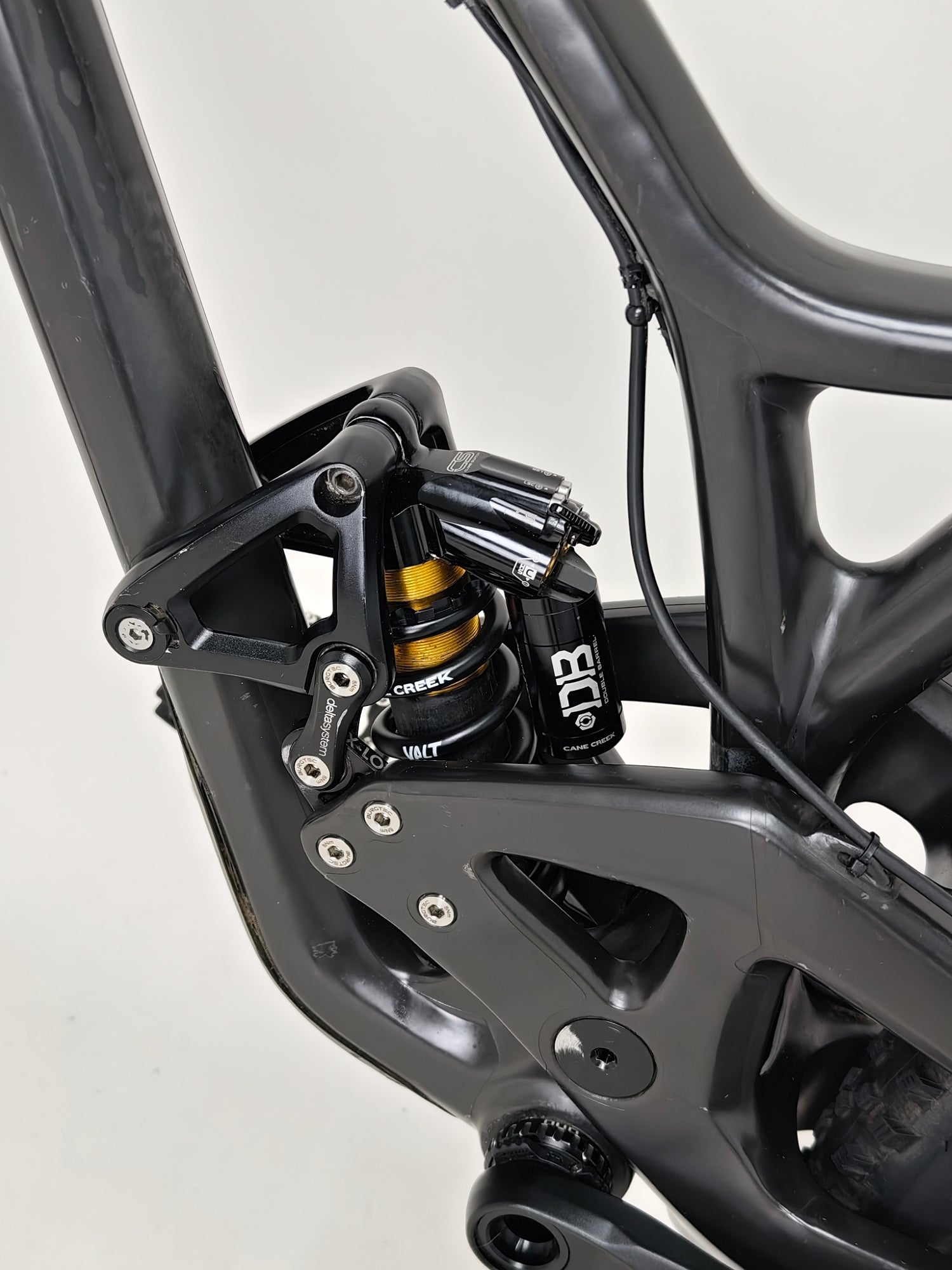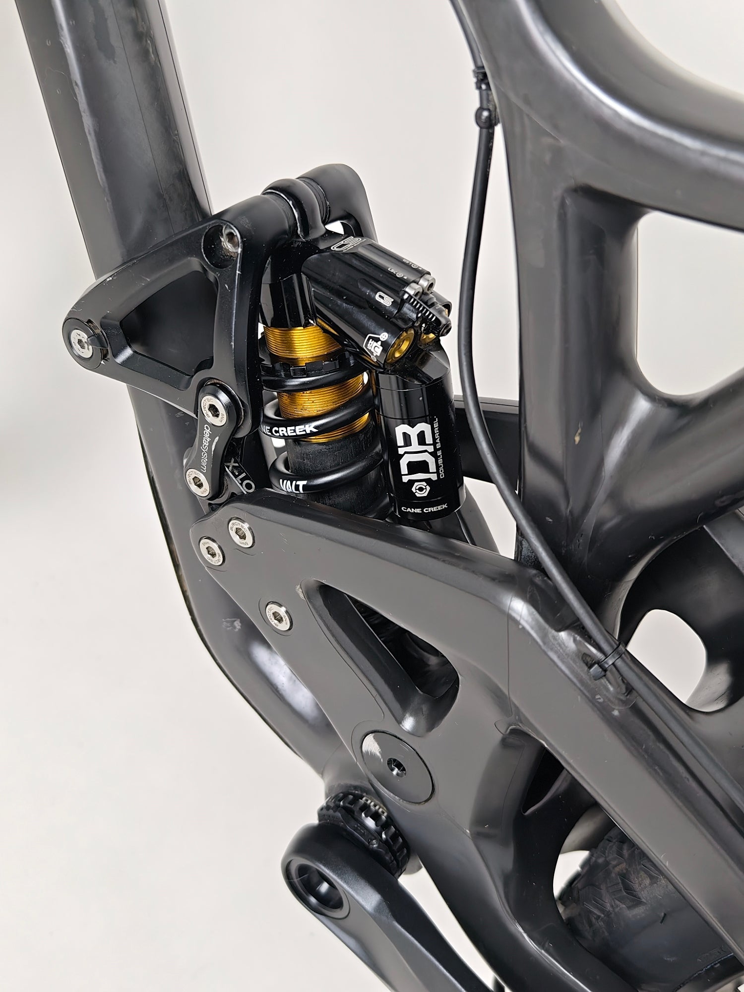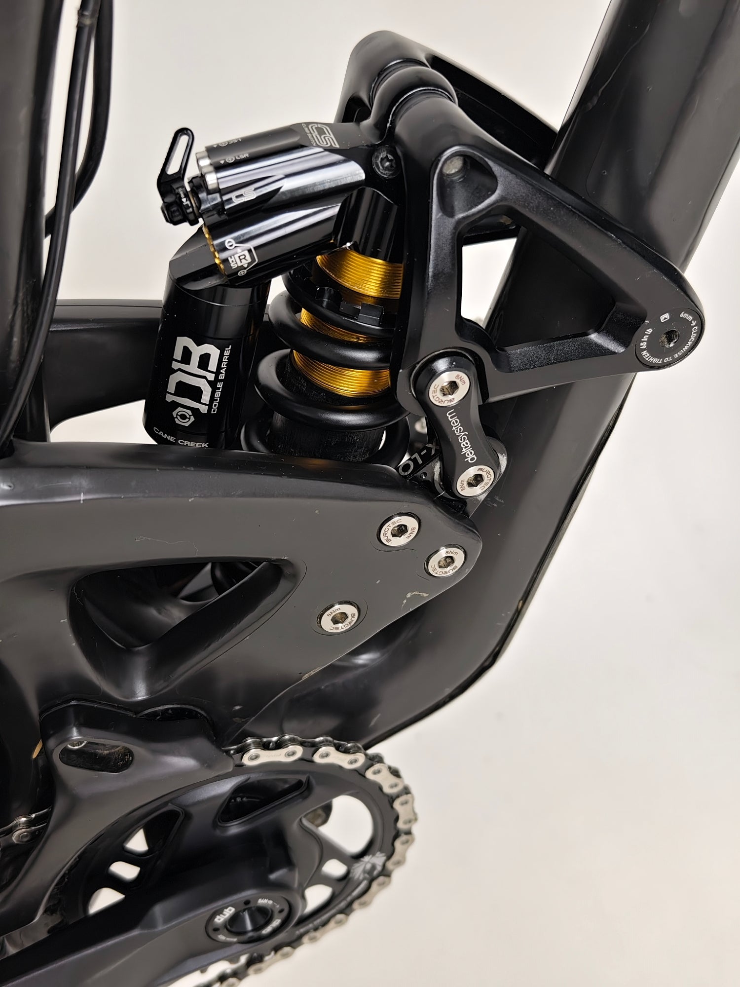 - Shock: Cane Creek DBCoil Shock with Cane Creek spring, Damping: Twin Tube independent externally-adjustable compression and rebound, in two high-speed and four low-speed damping circuits with