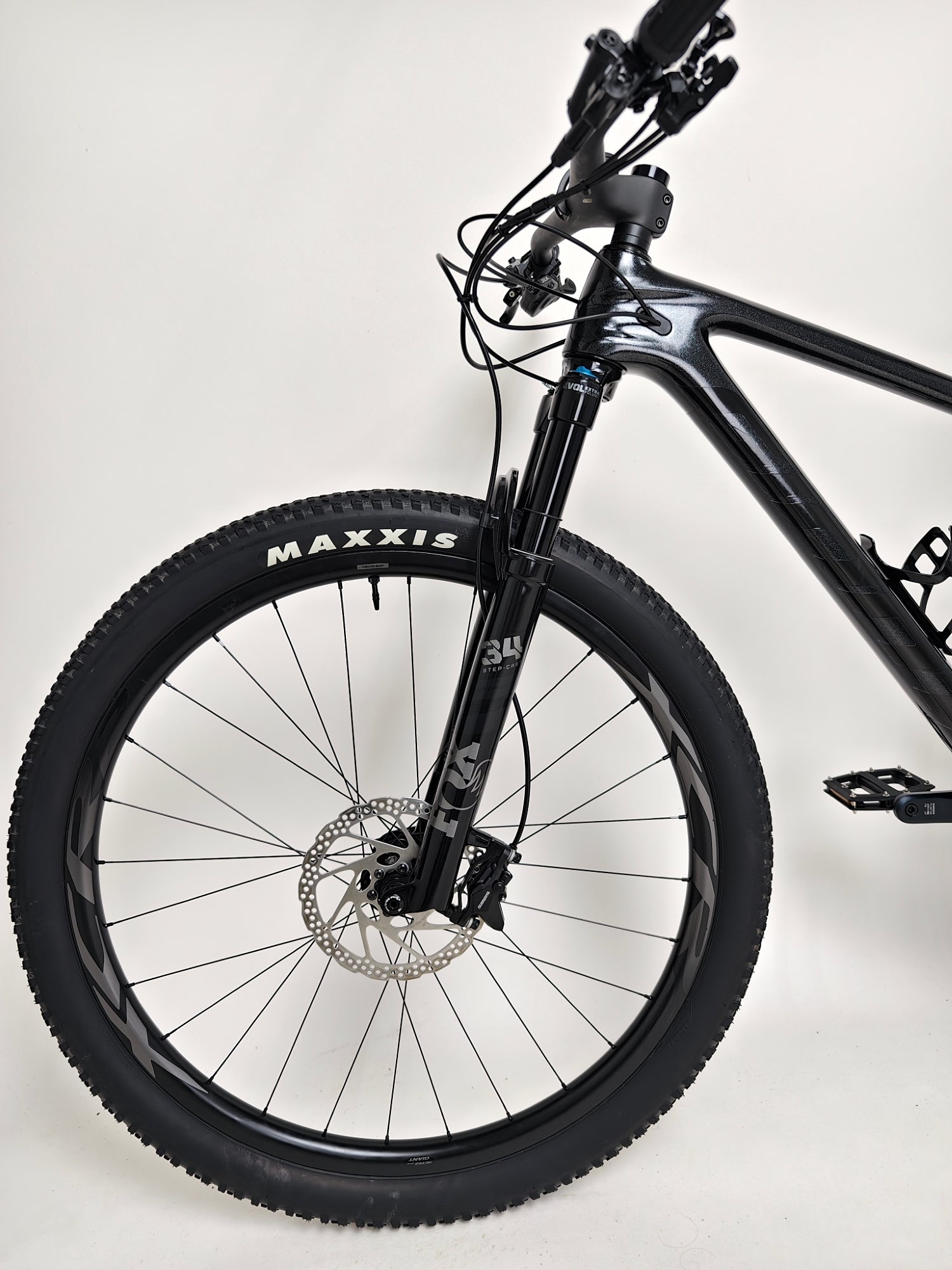 - Suspension Fork: Fox 34 Float SC Performance Remote, 110mm, Grip damper, Boost 15x110 Kabolt, 44mm offset, remote lockout, custom tuned for Giant
