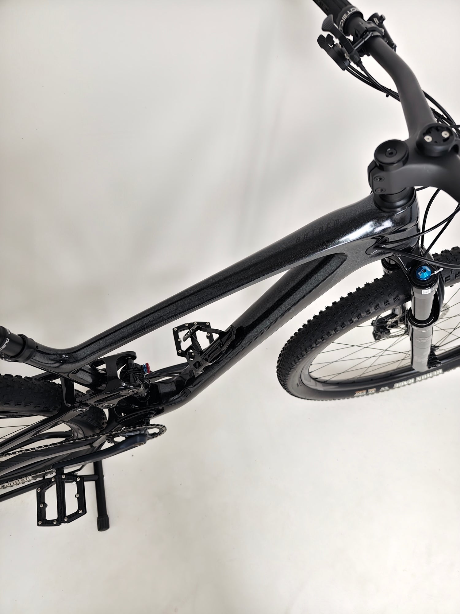 - Fame: Advanced-Grade Composite front and rear triangles, 100mm FlexPoint Pro suspension, 12x148mm thru-axle