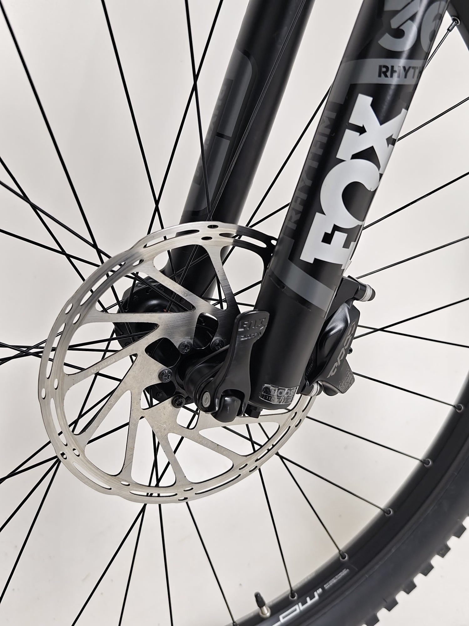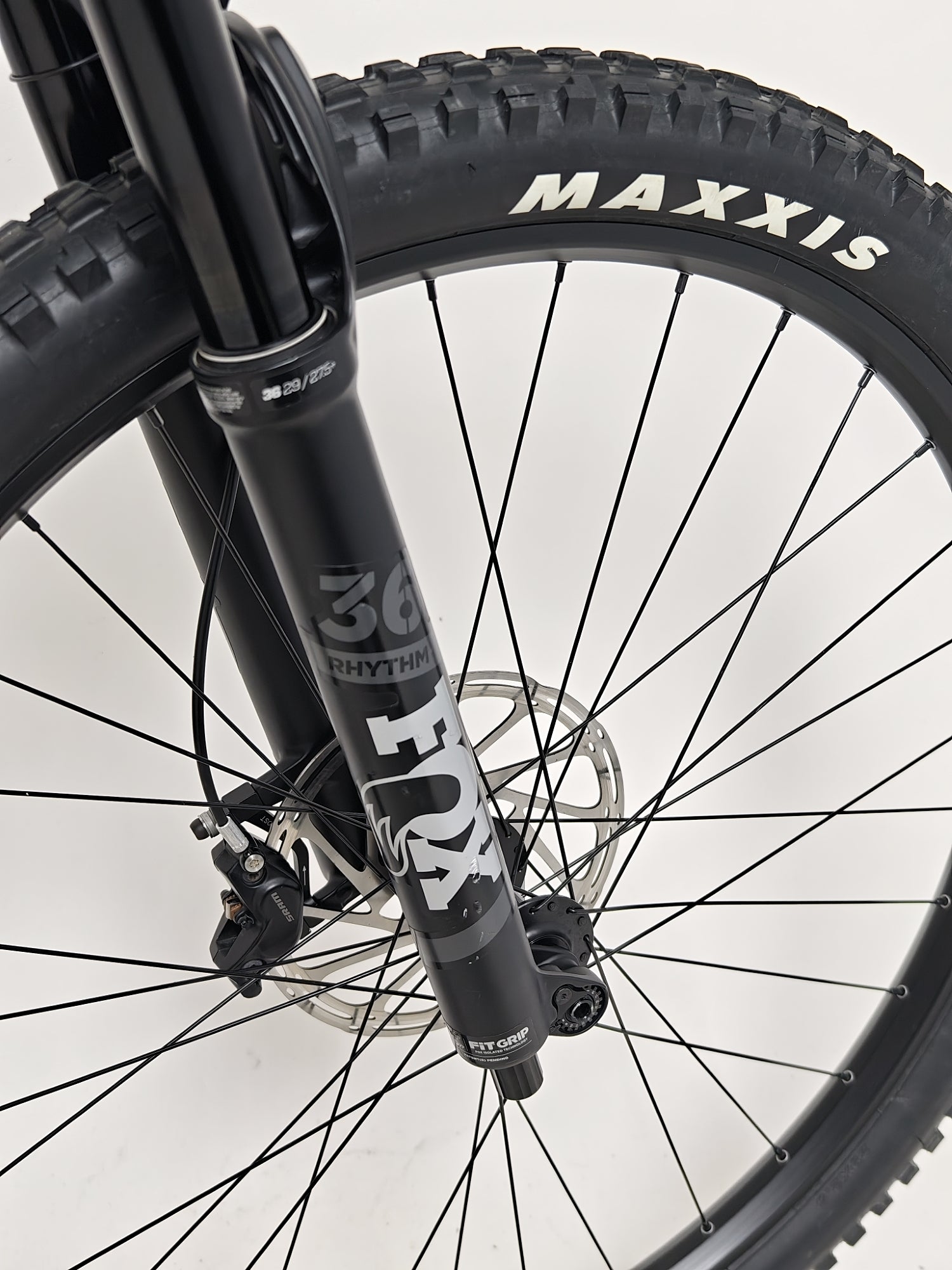 - Front Suspension Fork: Fox Float 36 Rhythm 160mm Travel. Sweep adjust, short offset
