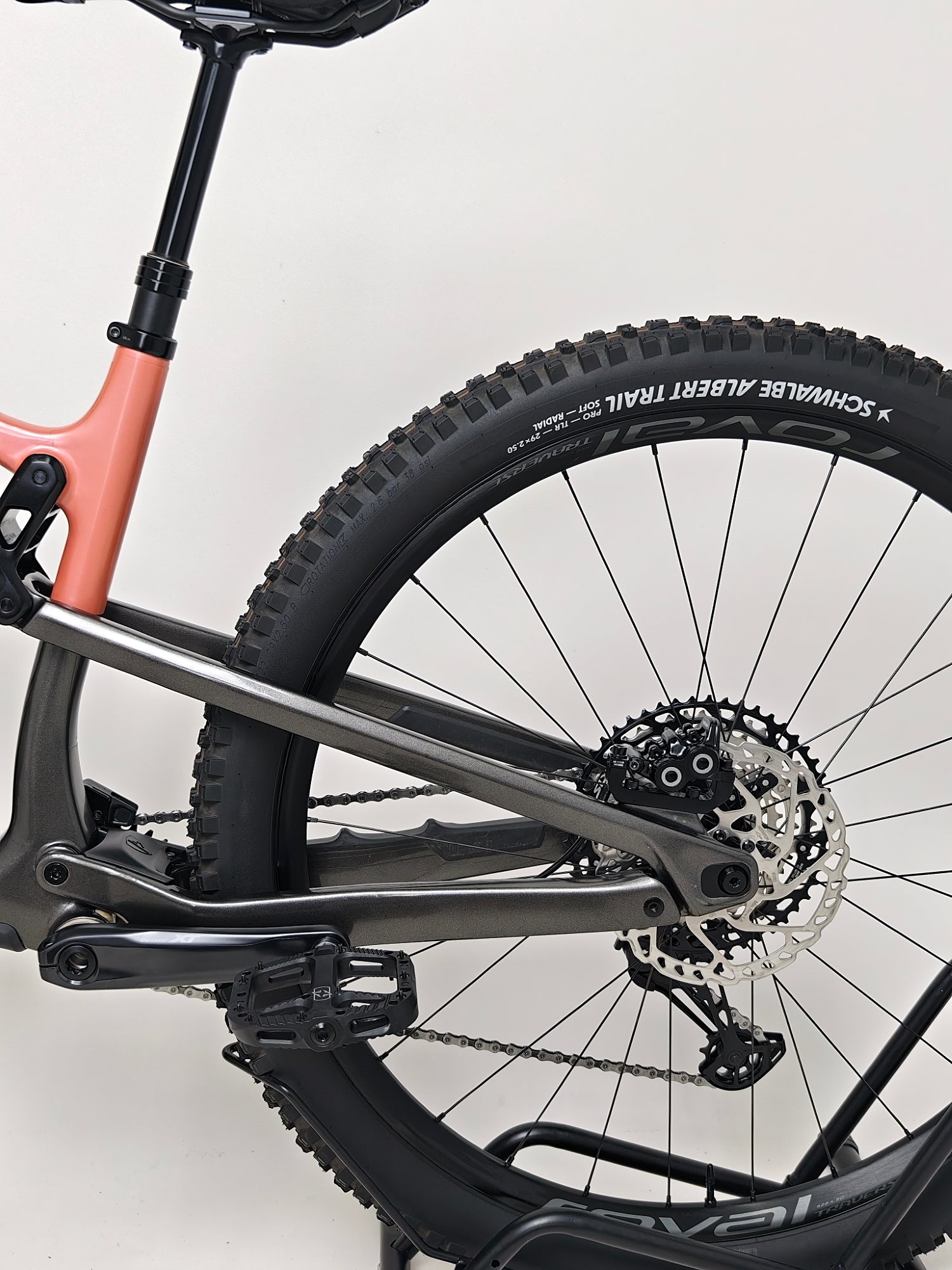 - Tyres: Schwalbe Albert Trail Pro Addix, 29x 2.50” / TUBELESS