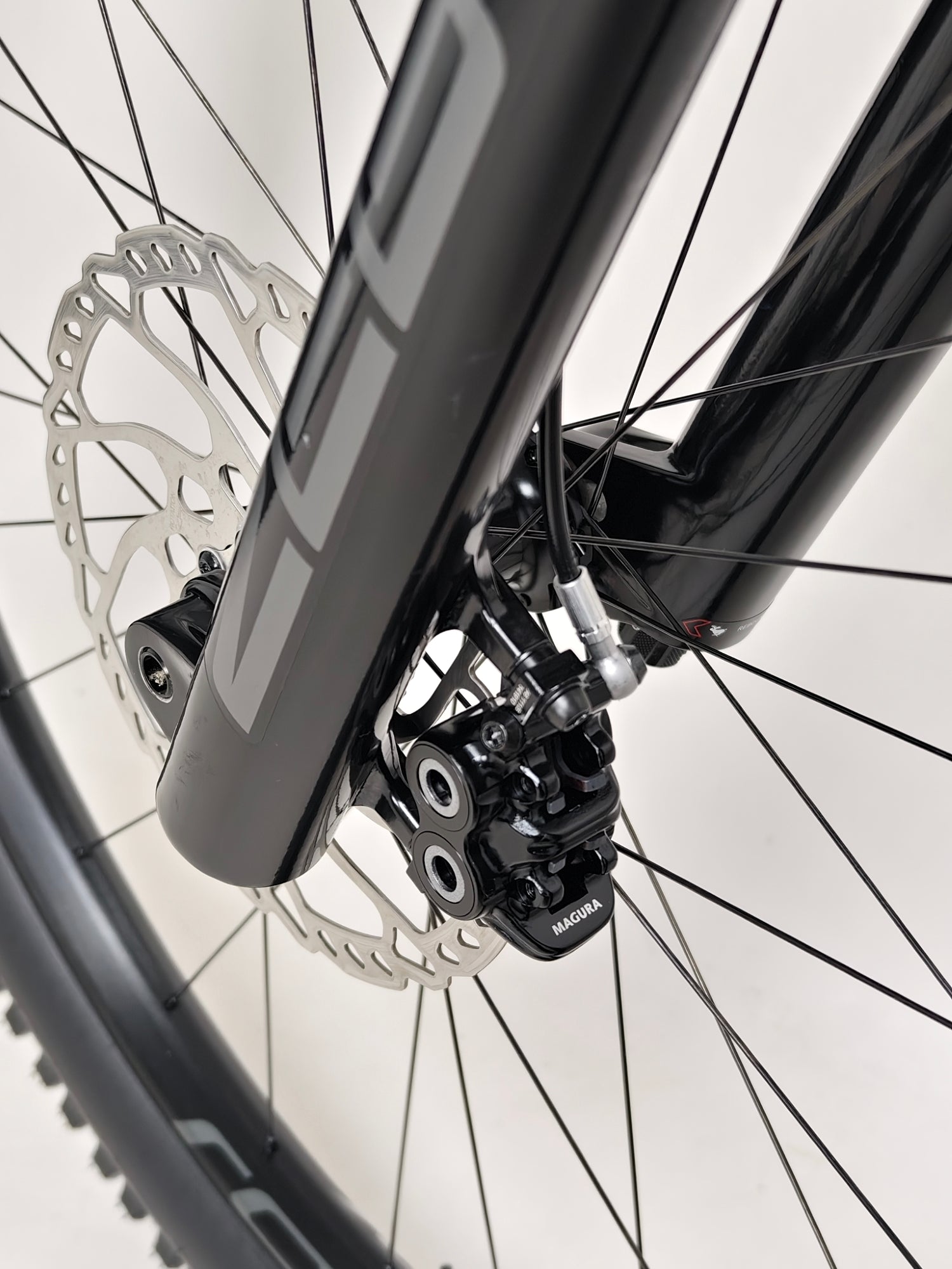 - Brakes: Magura MT5 4-Piston Hydraulic brakes, 203/180mm Shimano rotors