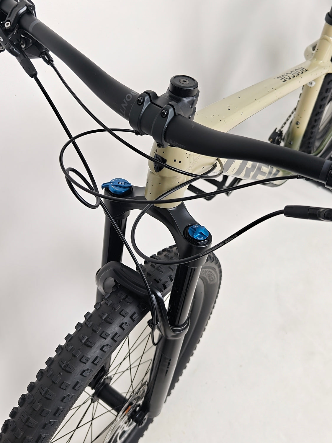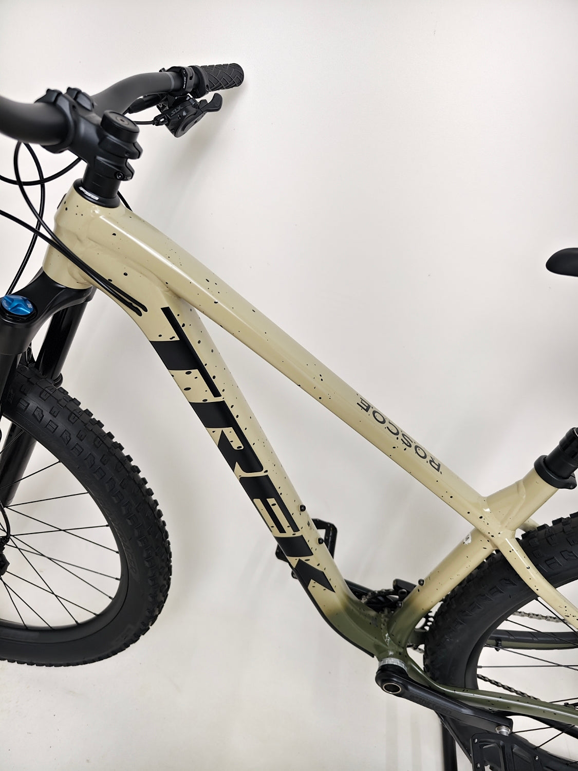 A Trek Roscoe 9 2024 mountain bike in excellent used condition. The frame paintwork is in very good shape, with only a few minimal, barely visible marks that are hard to notice.