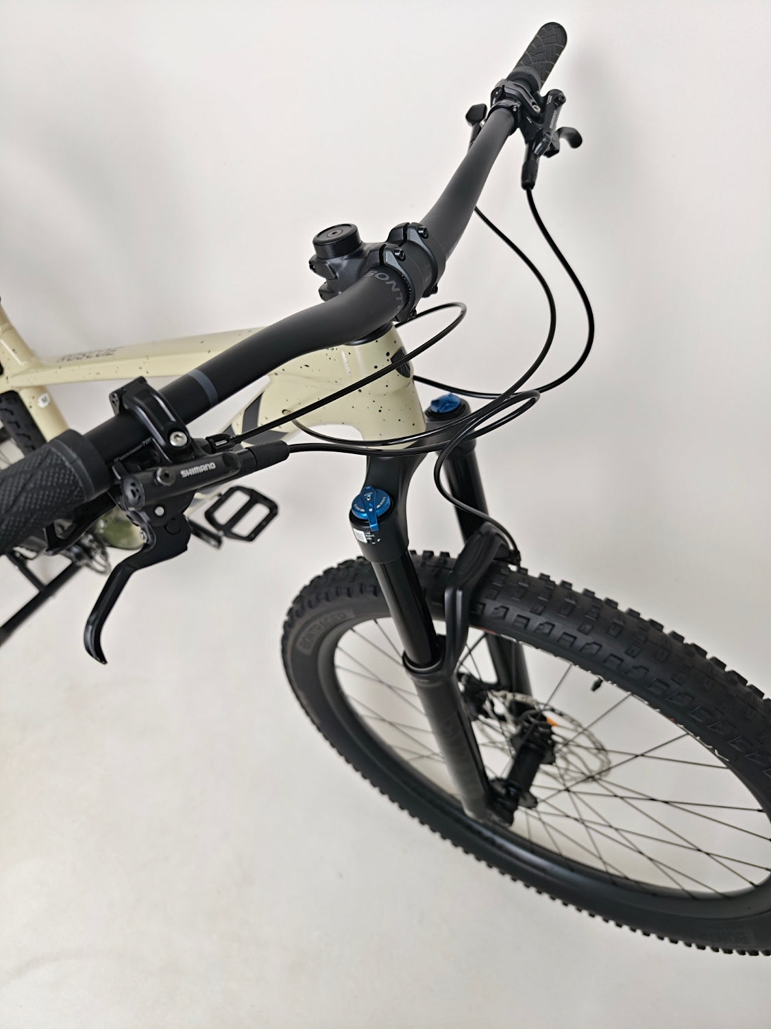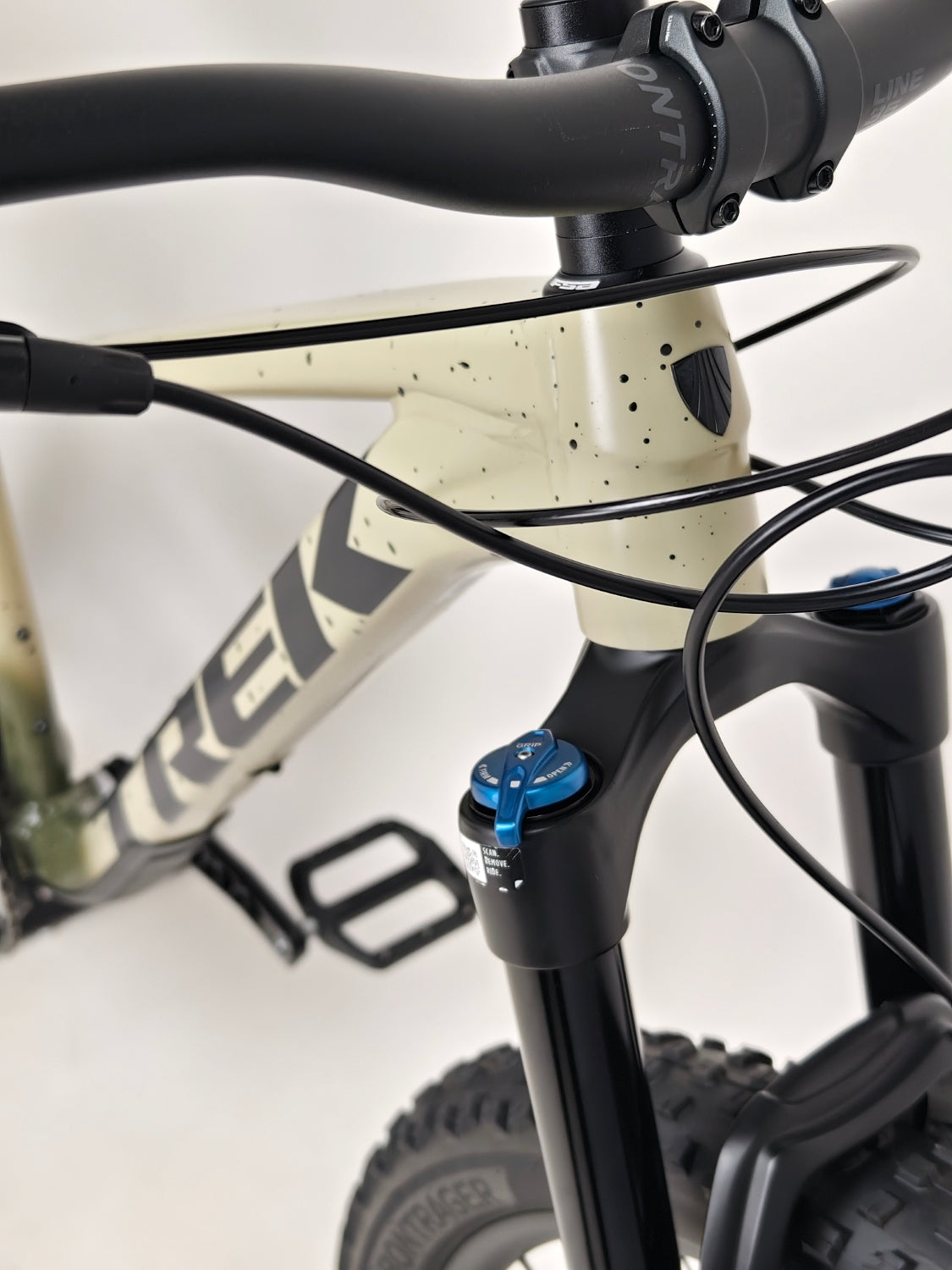 - Tyres: Bontrager XR4 Team Issue, Tubeless Ready, Inner Strength sidewalls, aramid bead, 120 tpi, 29 x 2.60", TUBELESS