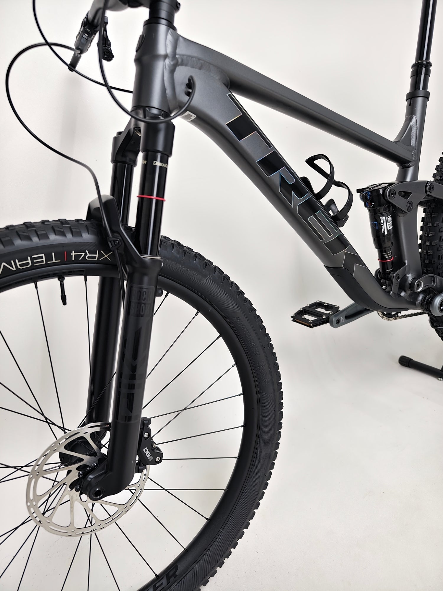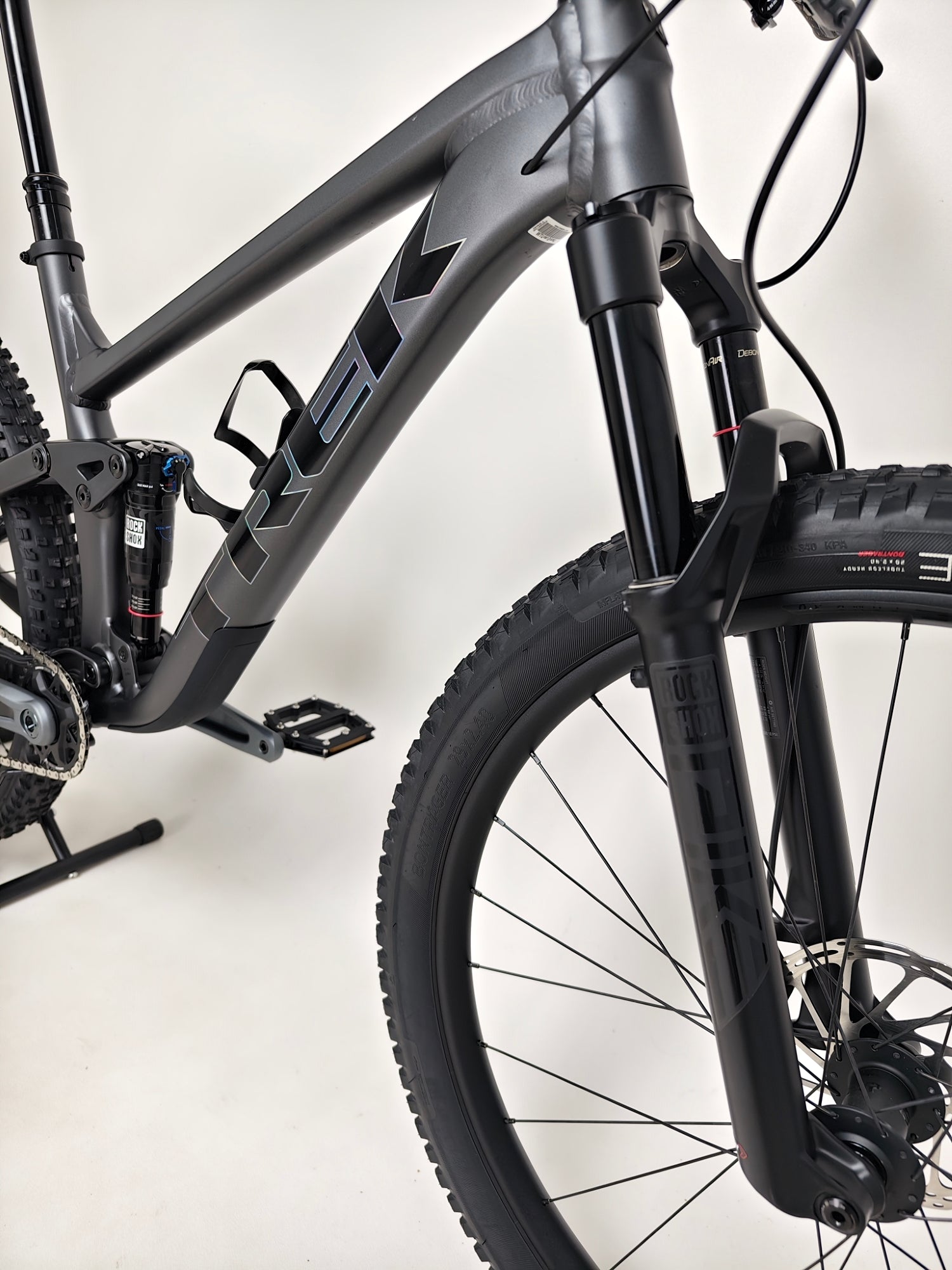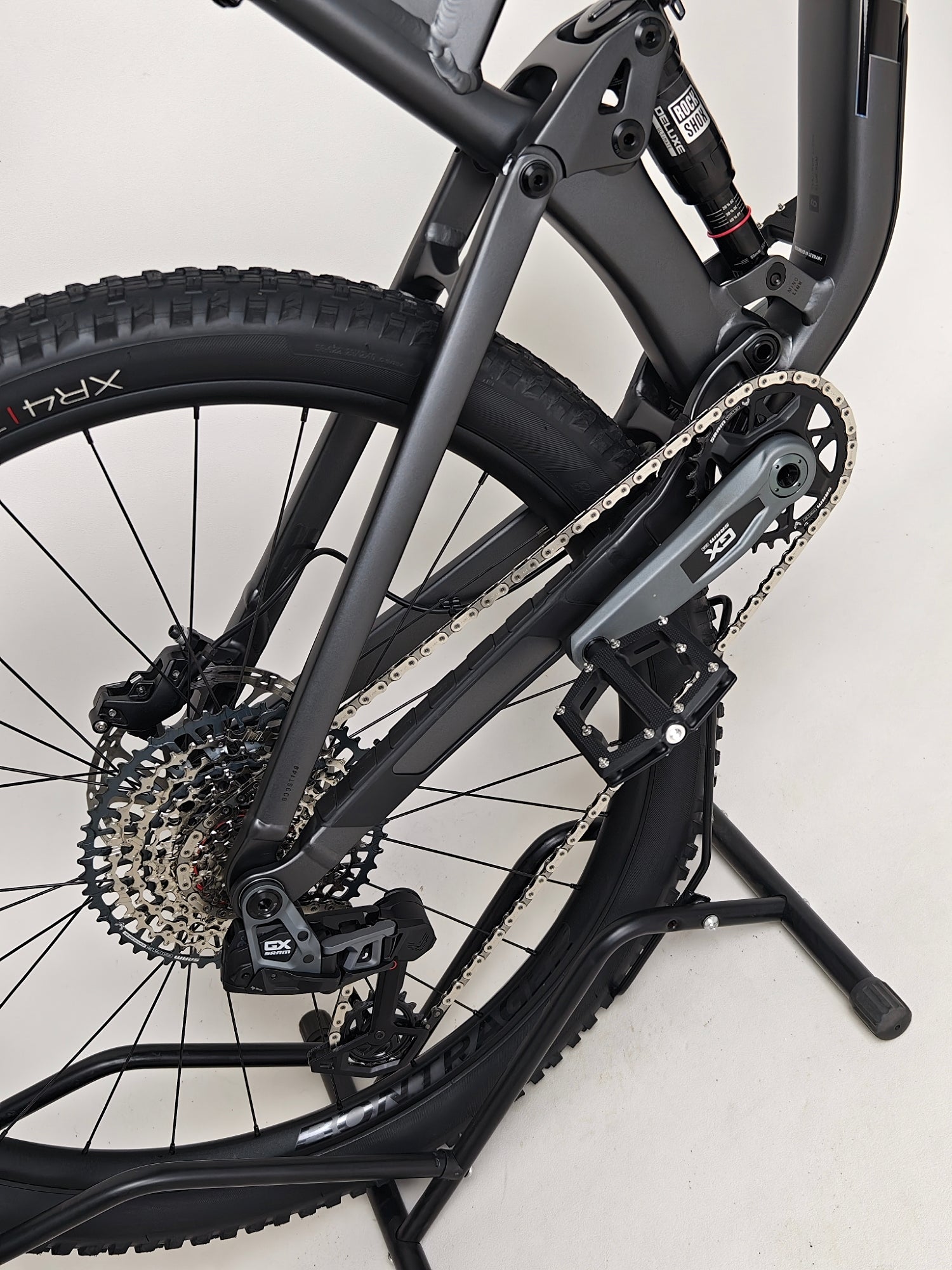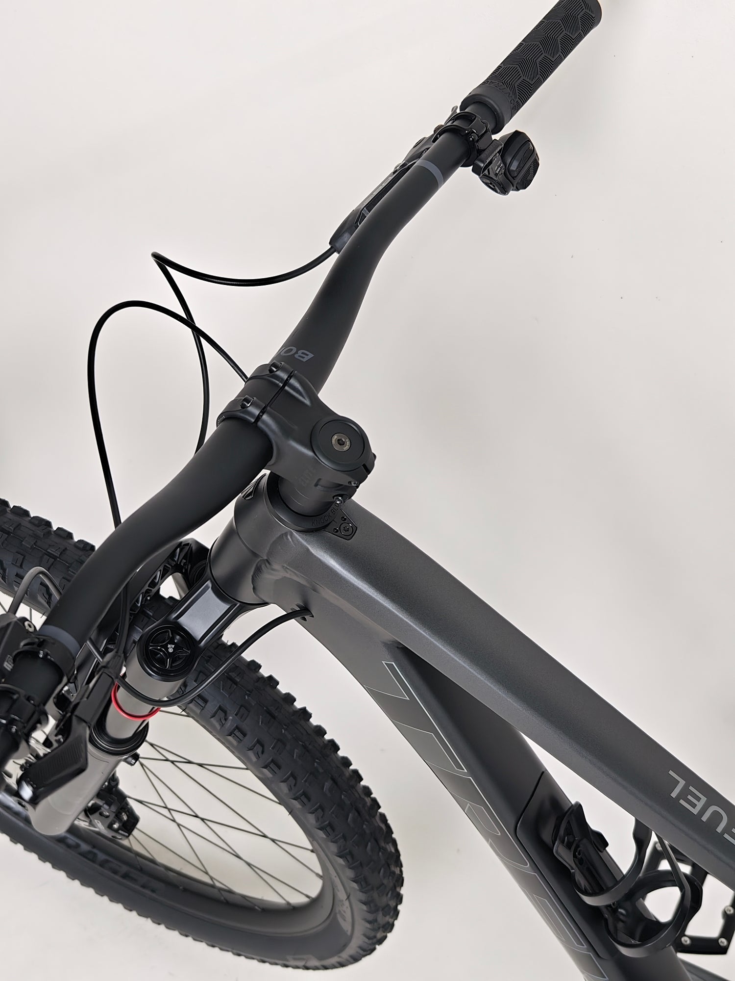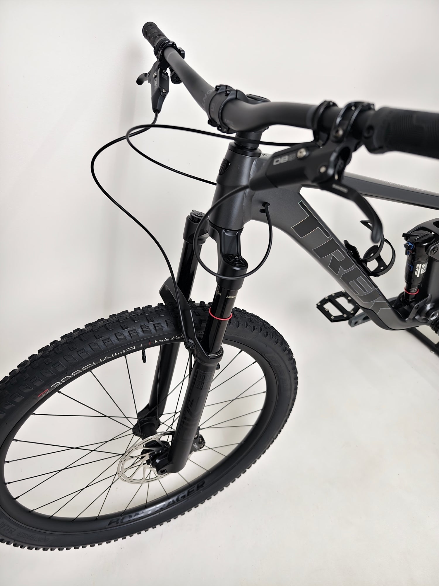 - Tyres: Bontrager XR4 Team Issue, Tubeless Ready, Inner Strength sidewalls, aramid bead, 120 tpi, 29x2.40", TUBELESS