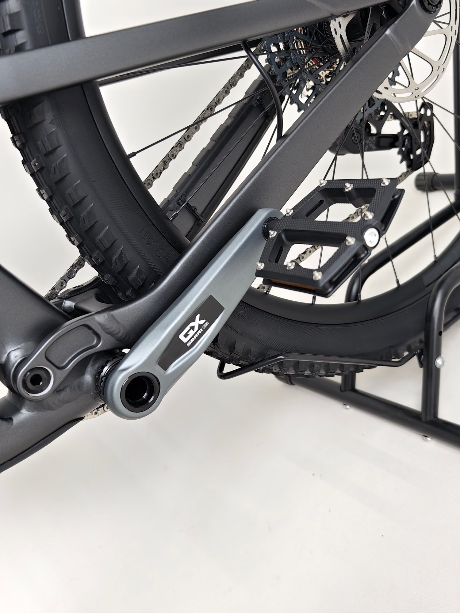 - Crankset: SRAM GX Eagle, T-Type, DUB, 30T, 55 mm chain line, 170 mm length