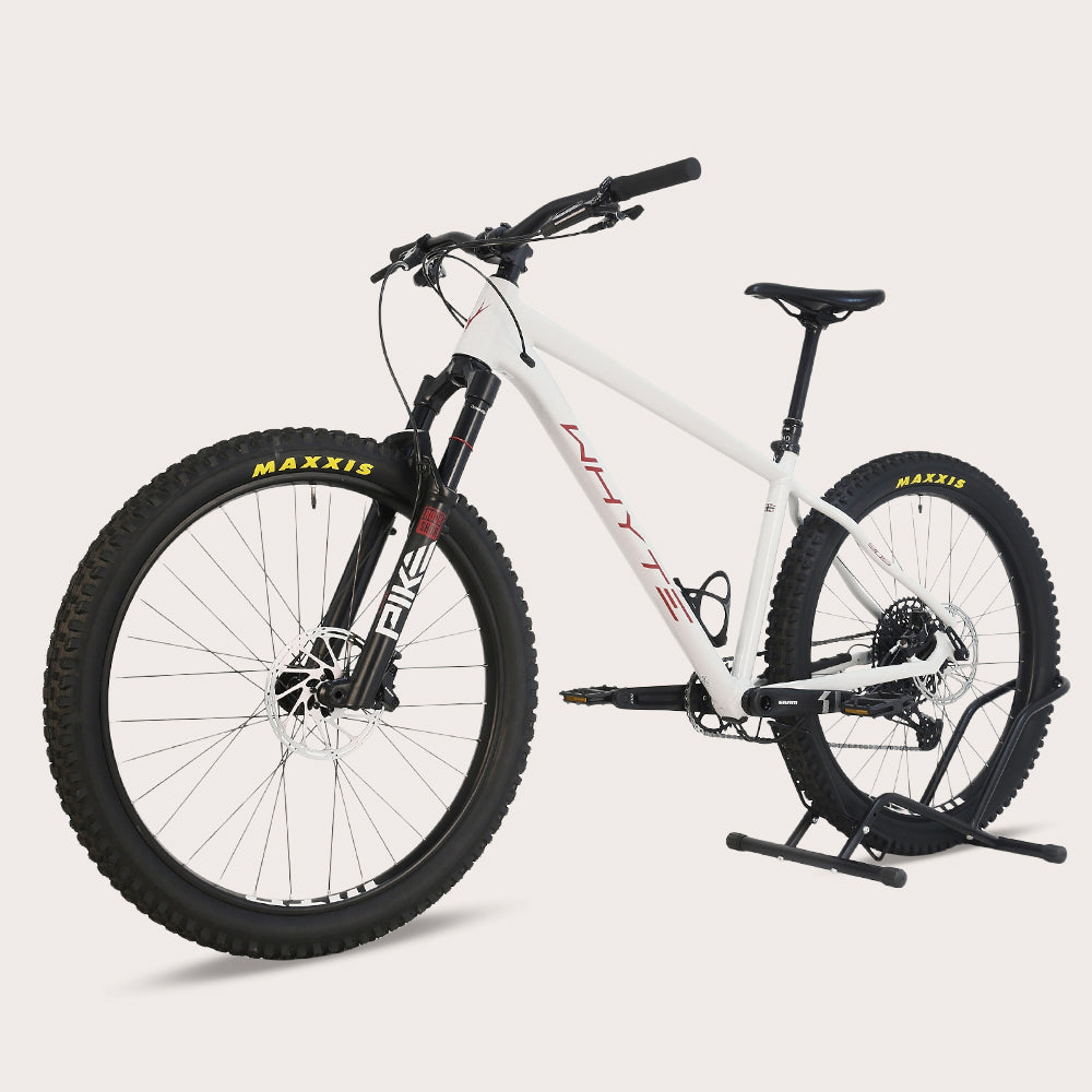 - Front Suspension Fork: RockShox Pike Select RC 27.5”, 130mm Travel, 37mm Offset, DebonAir, Charger RC Damper, Fast Black Coating, Tapered Steerer, 110mm x 15mm Boost, Maxle Ultimate